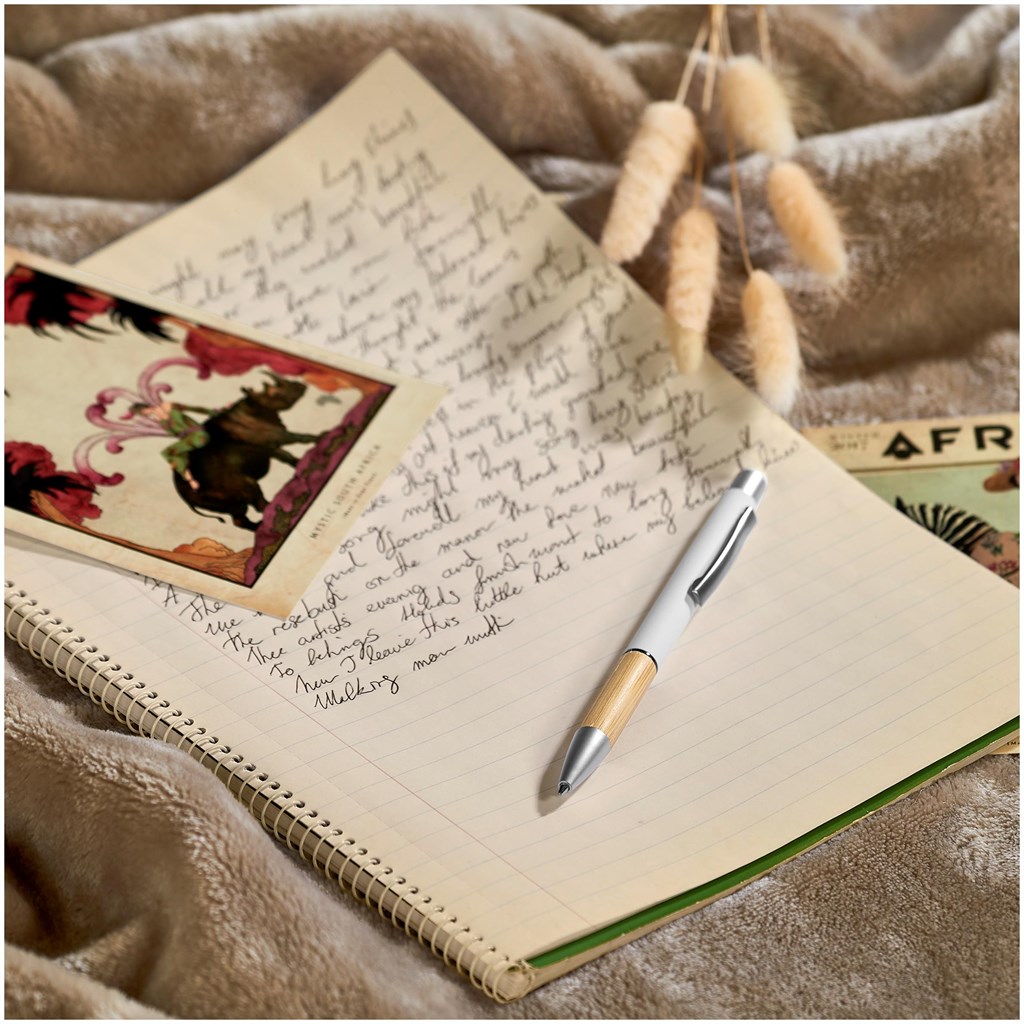The bamboo grip gives this pen a fresh and natural touch. The slender shape and smooth flowing refill combine for an easy writing experience.